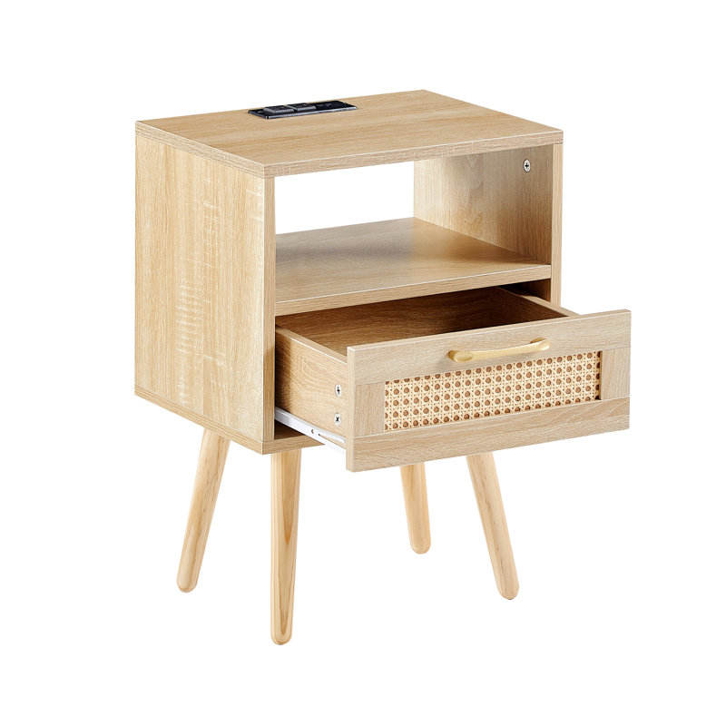 Mesita de noche de ratán moderna con cajón, mesa auxiliar de cama para mesas auxiliares de dormitorio
