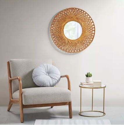 Espejo de Pared Moderno de Ratán con Diseño Tejido Único en Color Dorado, Espejo Decorativo para Baño, Mejor Precio en India