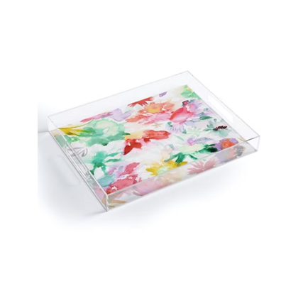 Bandeja de servir rectangular moderna de acrílico, diseño impreso personalizado, ecológico, para desayuno, pan y bocadillos.