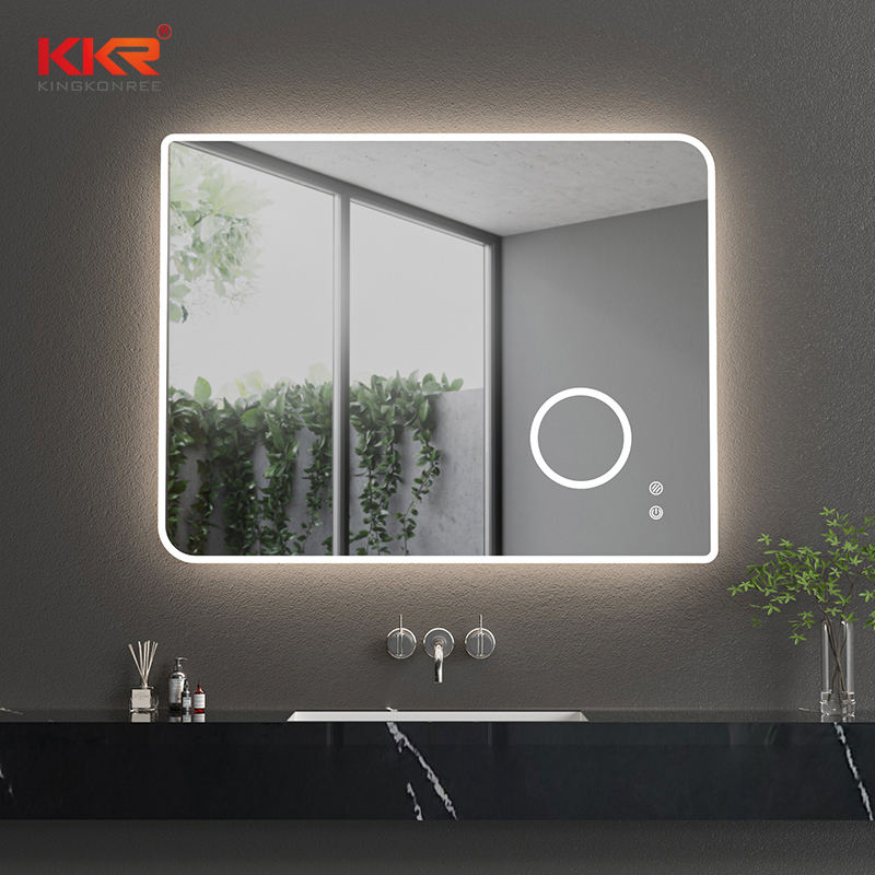 Espejo de Baño Rectangular Moderno con Interruptor Táctil LED, Lentes Plateadas sin Cobre de 5 mm, Iluminación para Uso Comercial