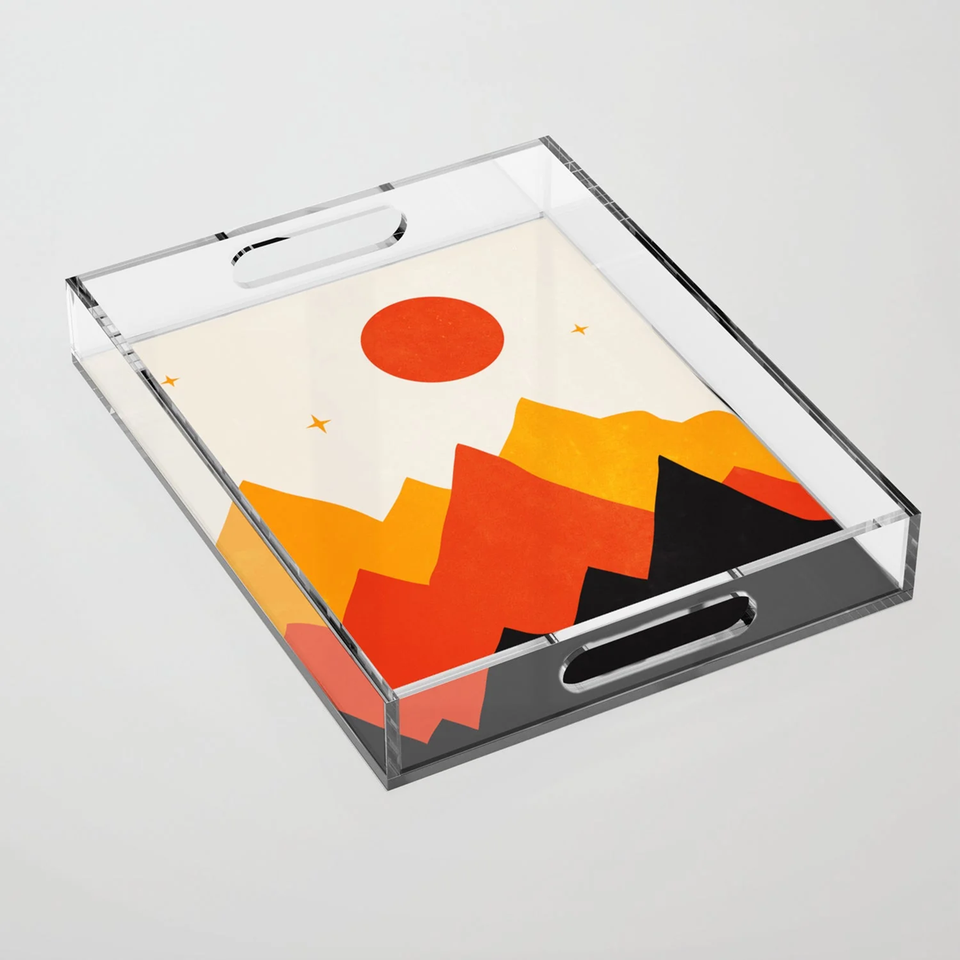 Bandeja de servir acrílica moderna de forma rectangular, transparente, con diseños impresos, para la zona de estar, como adorno de encimera, a los precios más bajos.