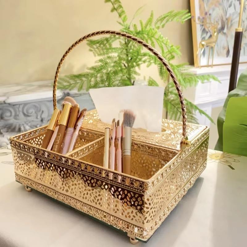 Caja de almacenamiento de pañuelos con forma de rectángulo moderno Caja de pañuelos de metal dorado de Calidad exclusiva con acento floral antiguo para uso en hoteles