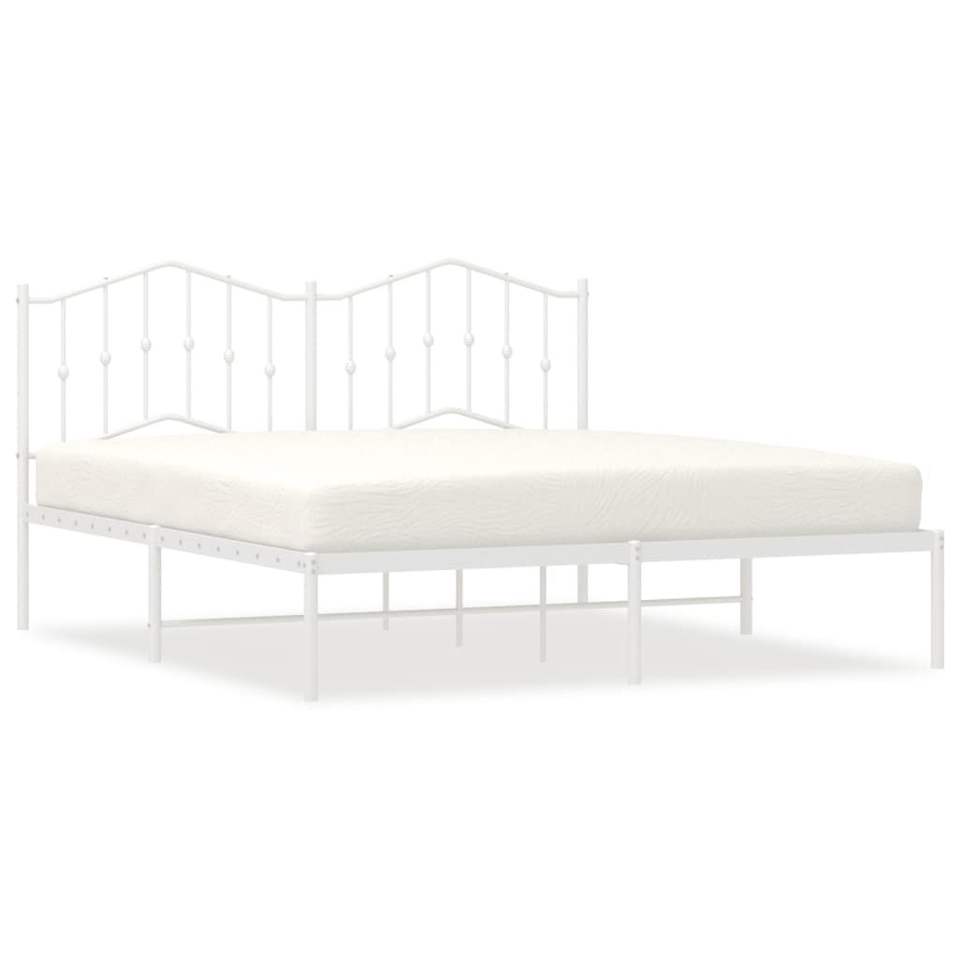 Base de Cama Moderna Rectangular de Acero Blanco de 72 x 84 Pulgadas, Camas Metálicas Contemporáneas