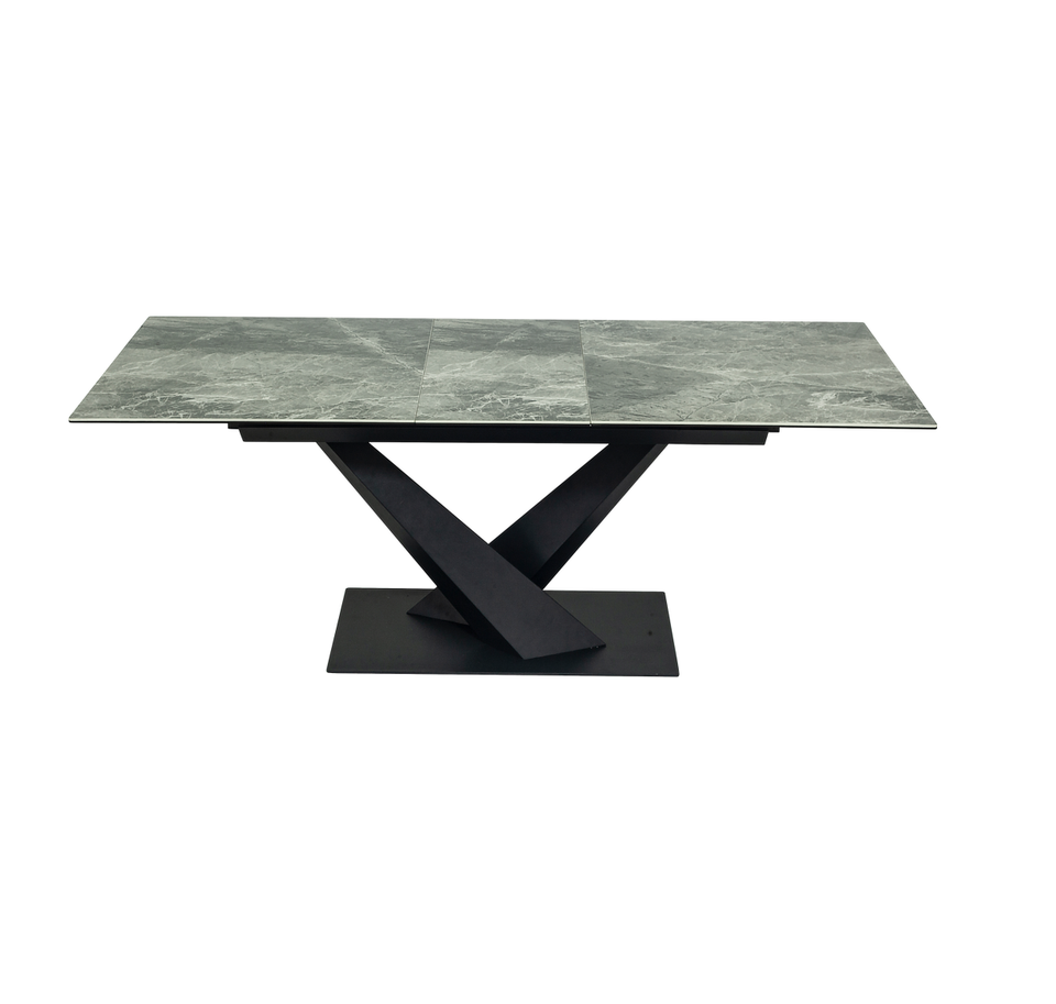 Mesa de comedor de extensión de elevación automática Rectangular moderna, marco de Metal negro, mancha de líquido de calor, piedra sinterizada, hoteles plegables