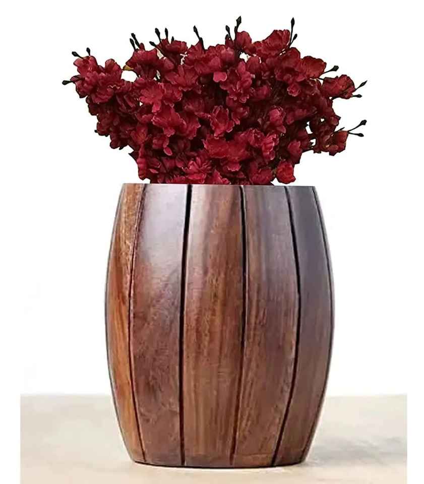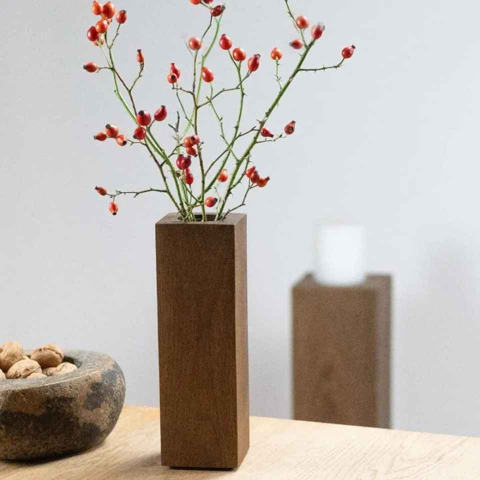 Jarrón de Madera Rectangular Moderno, Delgado, de Roble Oscuro, Decorativo, para Flores, para Decoración Minimalista de Sala de Estar o Repisa