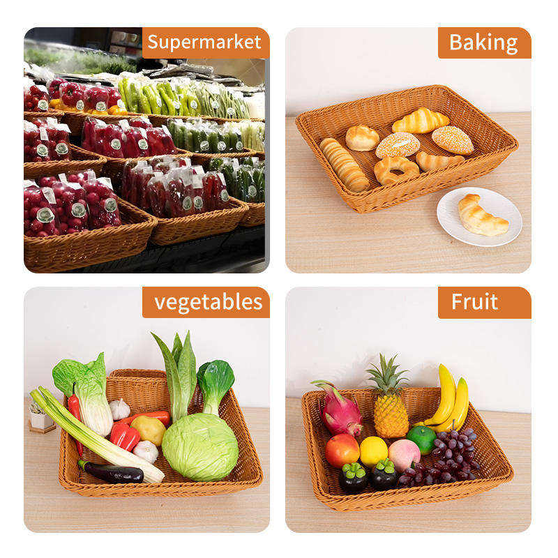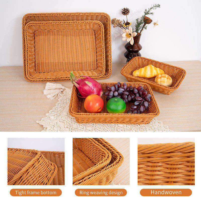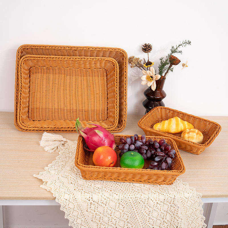 Cesta de Almacenamiento Rectangular Moderna Hecha a Mano de Ratán, Ecológica, Duradera y Multifuncional para Alimentos en el Hogar