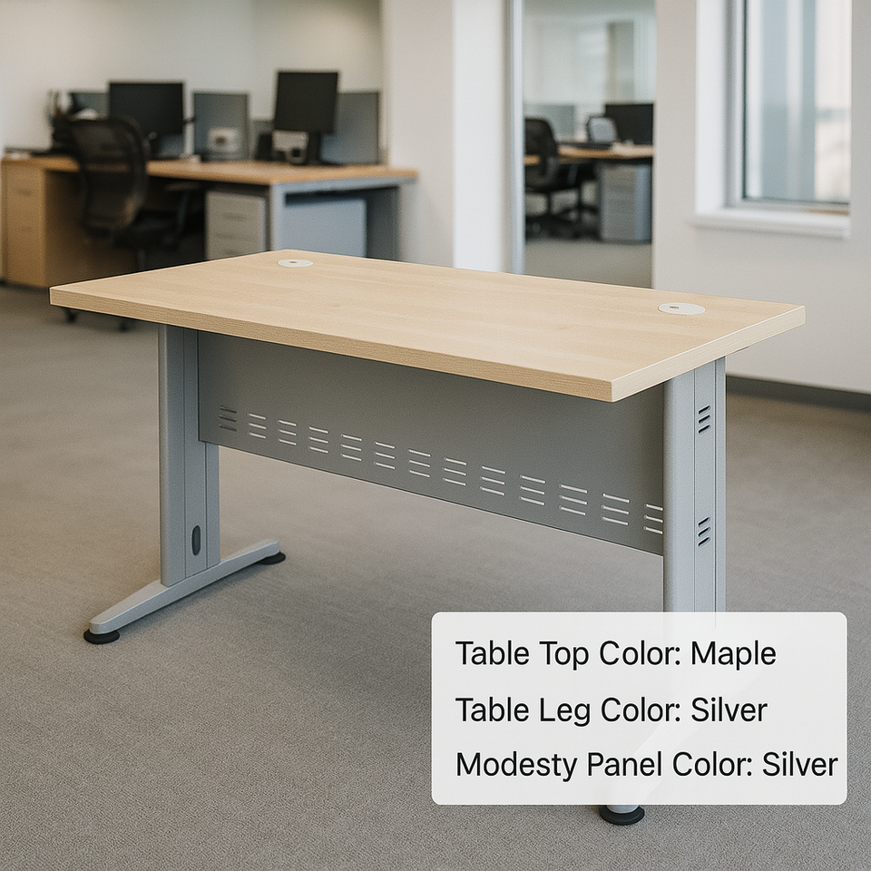 Aglomerado con acabado de melamina + pata/marco metálico y panel frontal