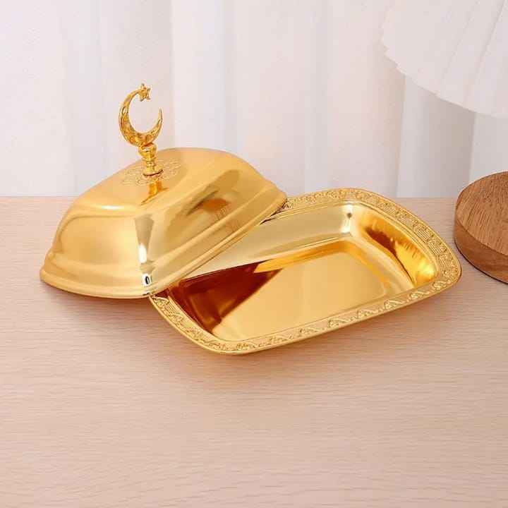 Moderna Mantequera Rectangular de Acero Inoxidable con Base Profunda y Tapa con Asa, Minimalista, para la Encimera de la Cocina