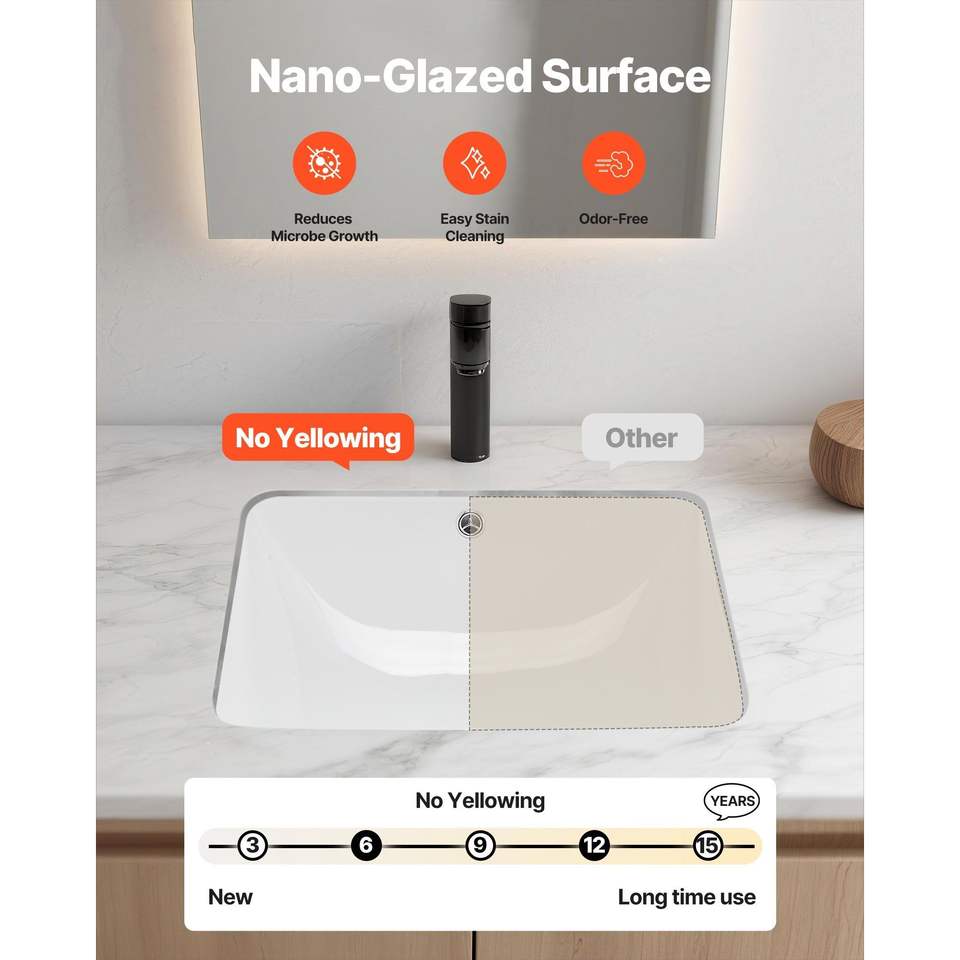 Lavabo Rectangular Moderno de Cerámica Blanca de 20.28 x 15.16 Pulgadas, Lavabo Bajo Encimera para Baño, Ideal para Espacios Pequeños