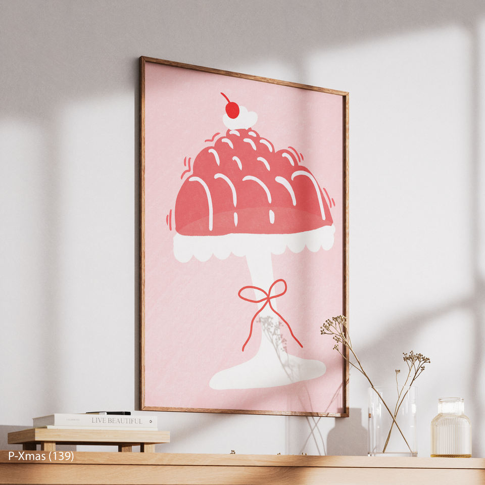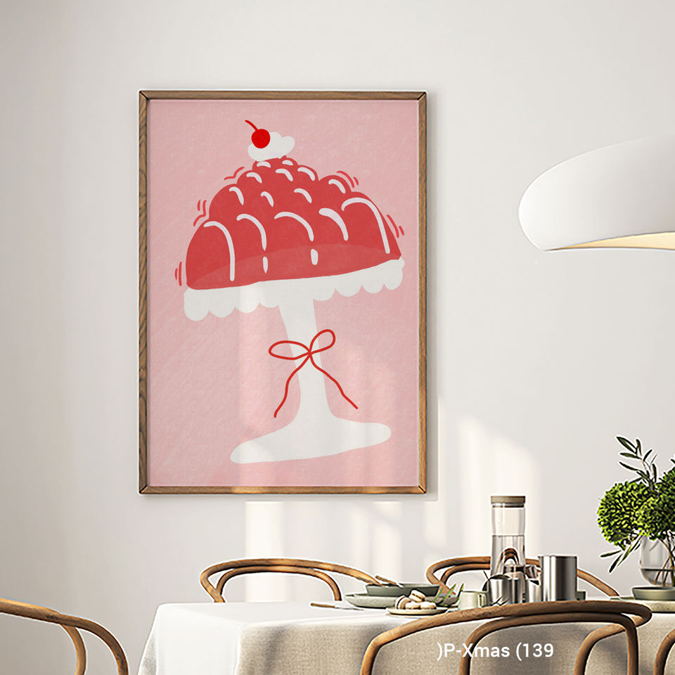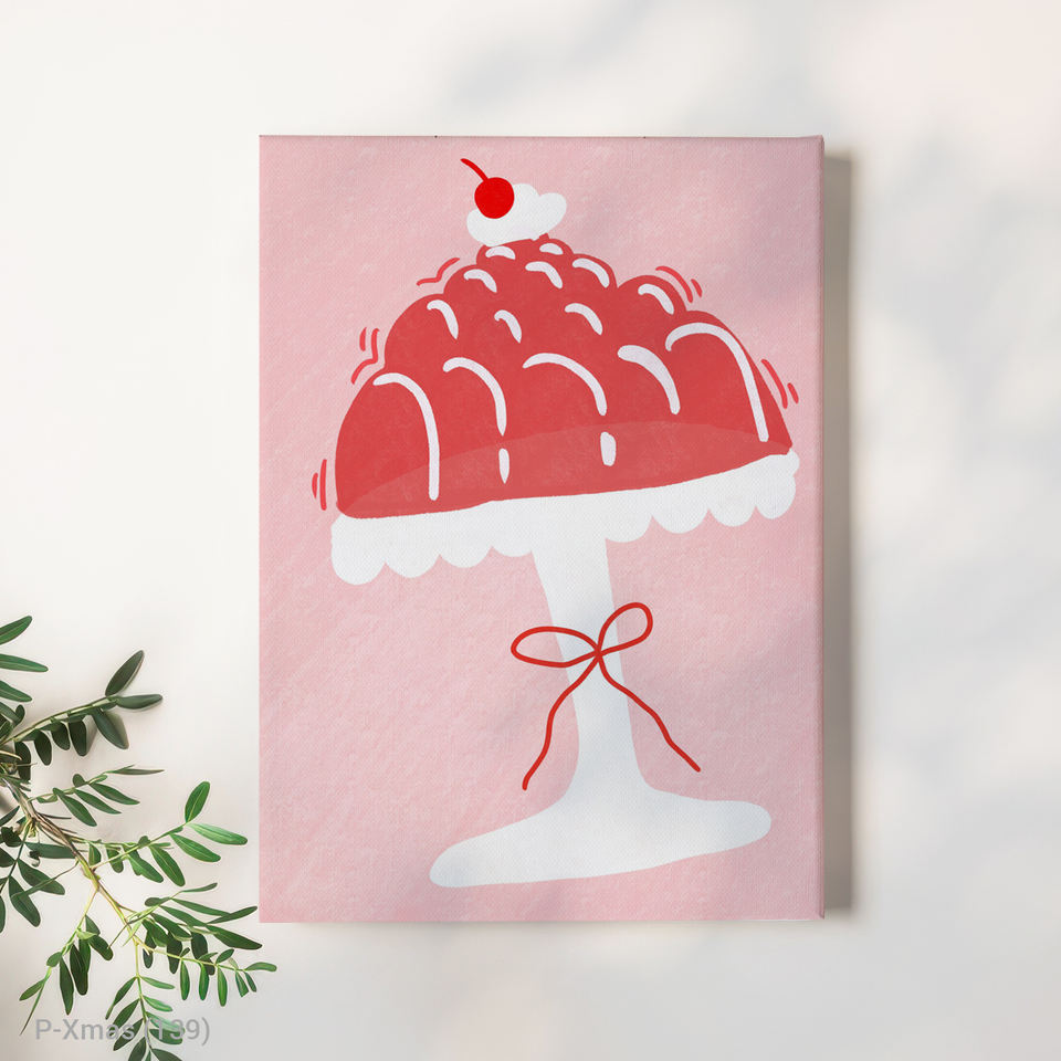 Moderno rojo Navidad Jello Cake HD lienzo arte marco de madera