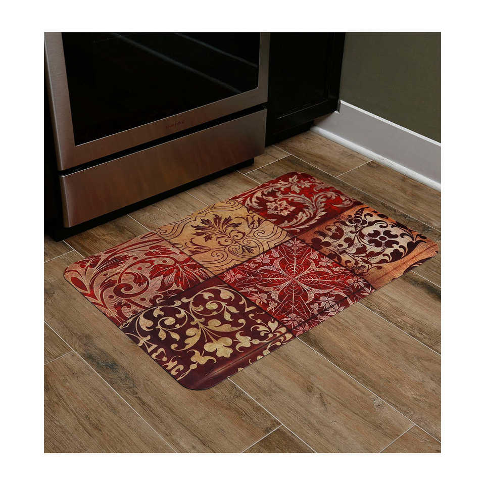 Alfombra de Cocina Antifatiga Moderna con Mosaico Rojo, Tejida en Poliéster, PVC, Goma y Espuma de PU, Lavable, para Cocina y Baño