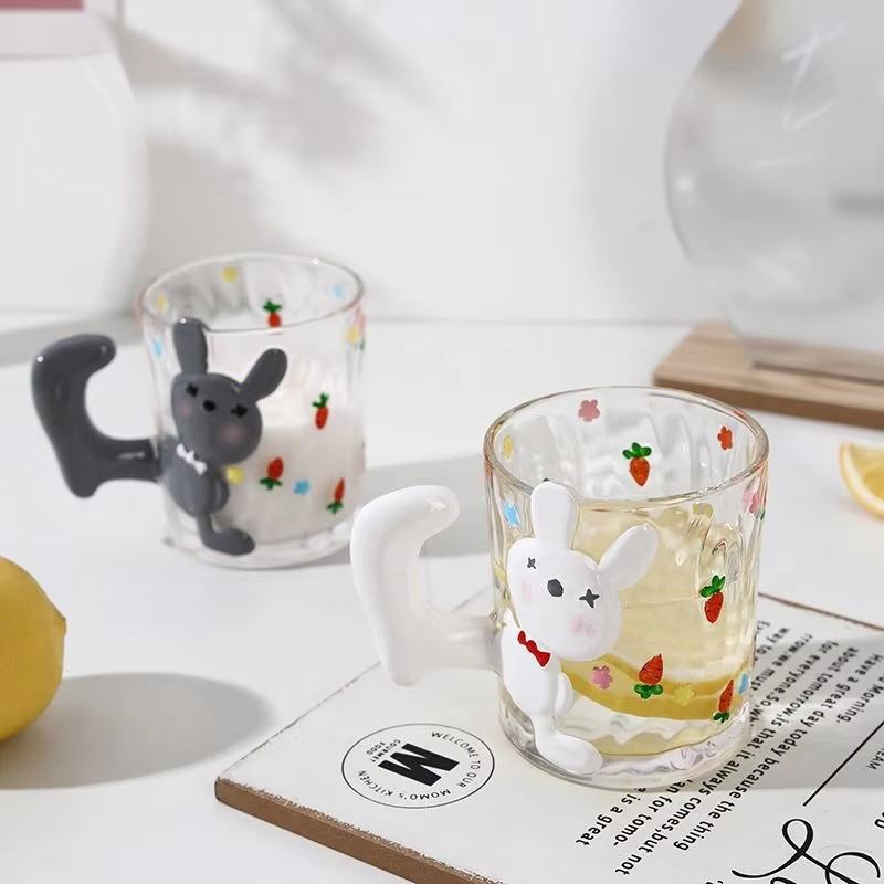 Taza de Café de Vidrio Moderna con Relieve Pintado a Mano, Diseño de Conejo Adorable, Ecológica, Apta para Microondas, para Bebidas Frías, Regalo de Boda para Parejas, para Biblioteca