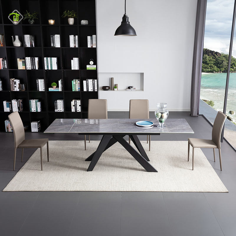 Muebles de restaurante modernos, placa de roca Rectangular de lujo Simple, mesa de comedor con patas de Metal