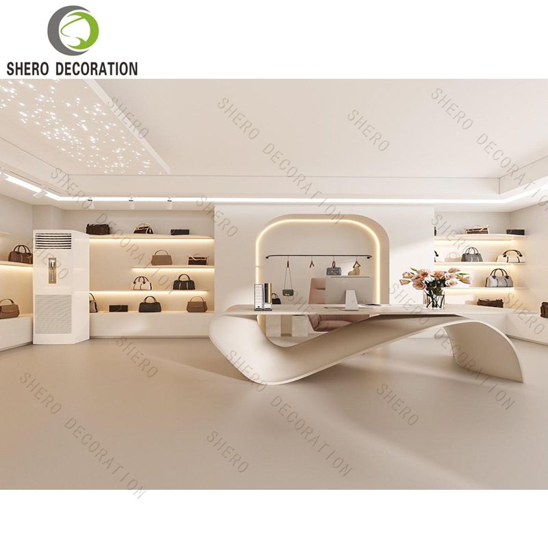 Diseño Interior Moderno para Tienda de Bolsos, Muebles para Tienda de Zapatos, Mostrador con Diseño Artesanal de Madera con LED