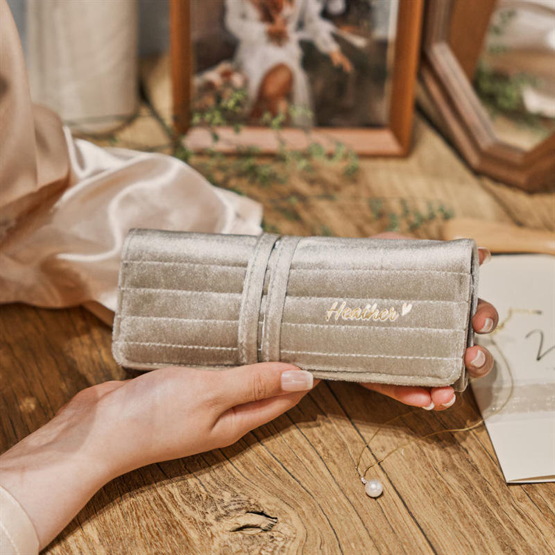 Bolsa de viaje bordada personalizada Retro moderna bolsa de almacenamiento de joyería rodante de terciopelo multifuncional