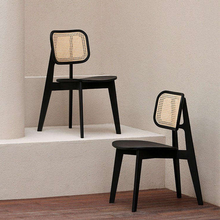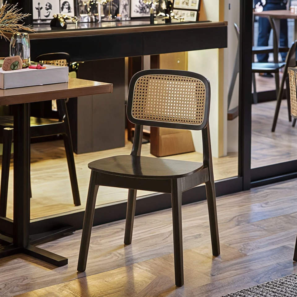 Sillas de Restaurante Modernas Retro de Madera Maciza y Ratán, Sillas de Comedor Comerciales de Madera, Personalización para Hoteles, Restaurantes y Cafés, Venta al Por Mayor