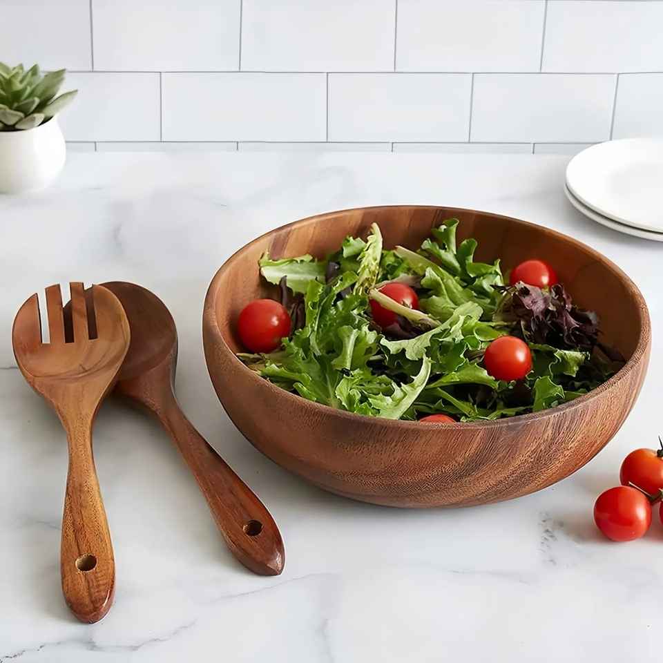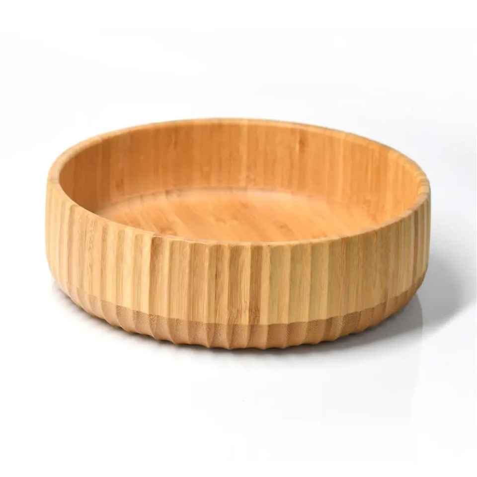Moderna Ensaladera de Bambú Acanalado, Cuenco Redondo con Textura Vertical, Ecológico, Grande, de Madera de Bambú, Vajilla para Cocina, Venta al por Mayor