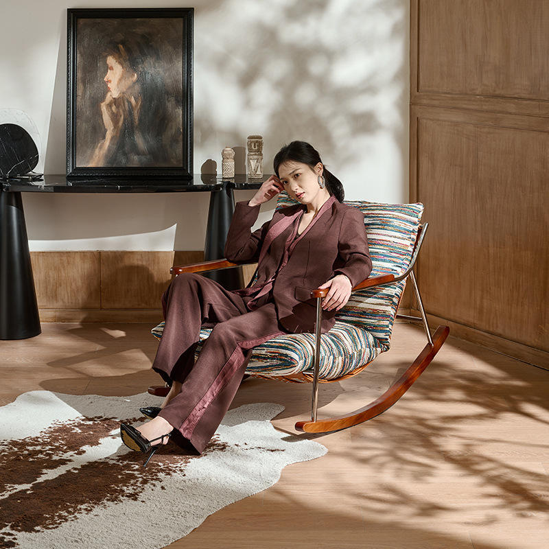 Sillón Mecedora Moderno, Sillón Individual de Estilo Vintage, Muebles para Sala de Estar, Estructura de Armazón, Pintura Ecológica