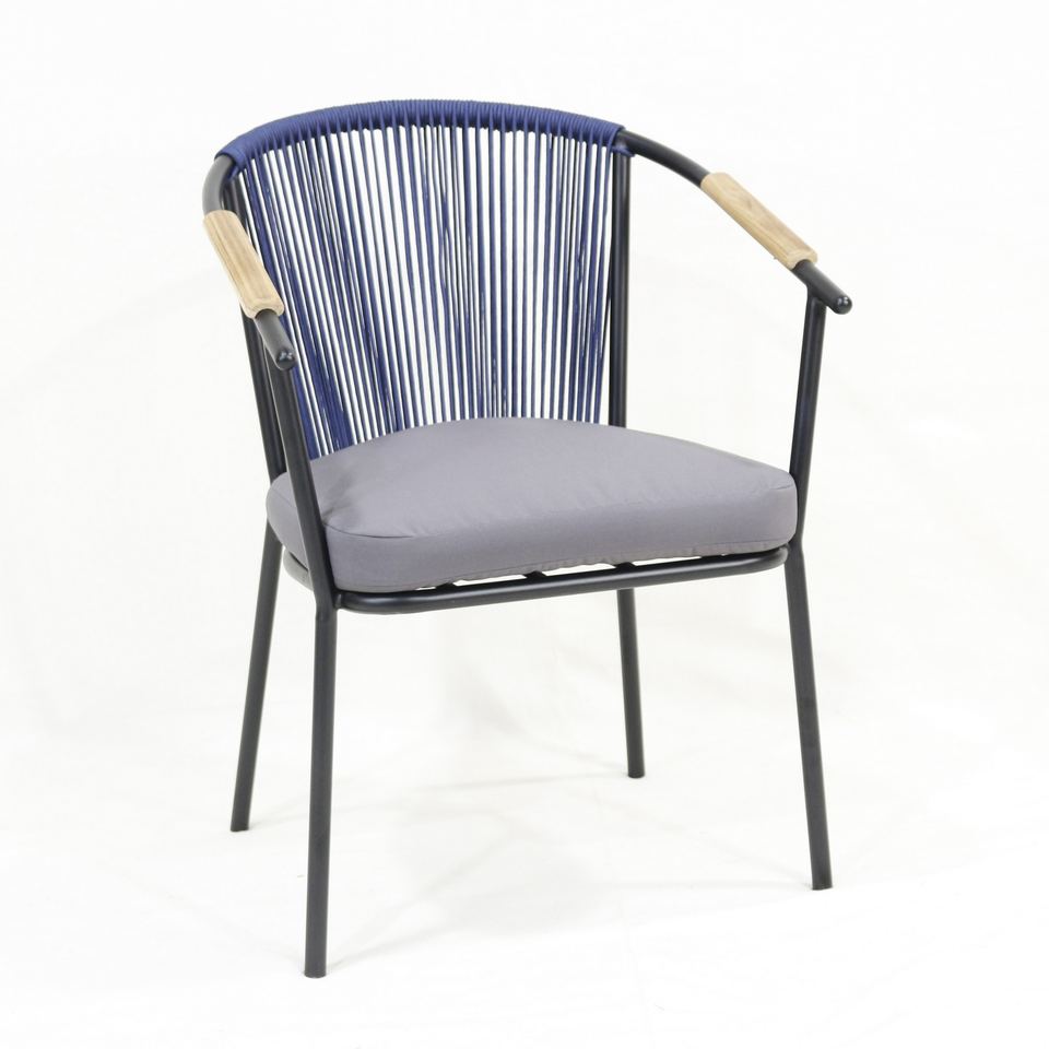 Silla de Comedor Moderna de Cuerda y Metal con Reposabrazos de Madera y Cojín de Asiento Suave
