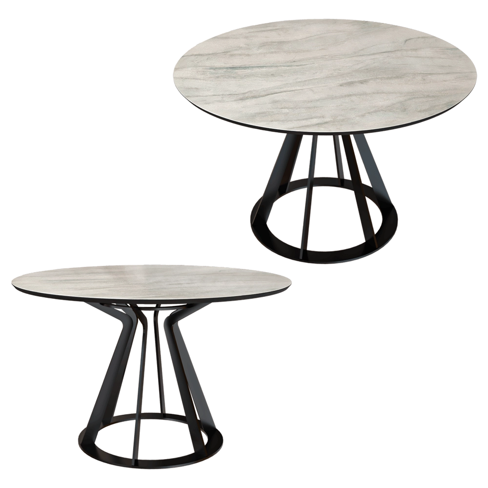 Mesa de Comedor Redonda Moderna de Mármol con Base Cruzada de Acero Inoxidable Negro, Muebles de Lujo para el Hogar y Hoteles