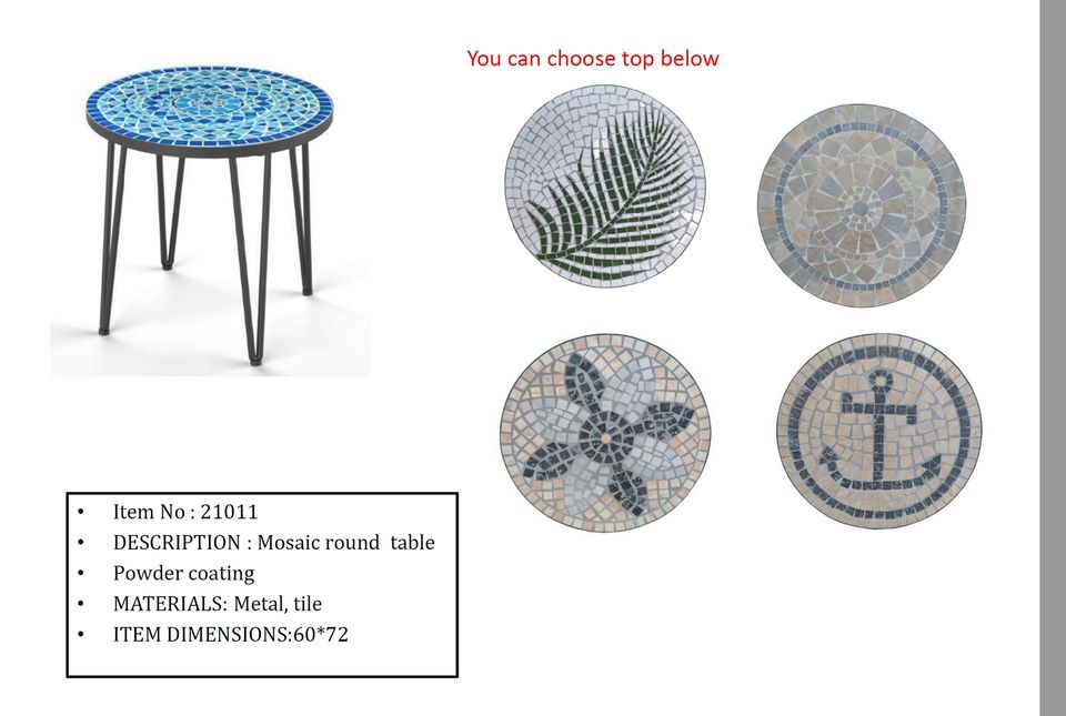 Mesa de comedor de exterior de mosaico redondo moderno | Marco de aluminio duradero para hoteles, villas y patios | Hecho en Vietnam