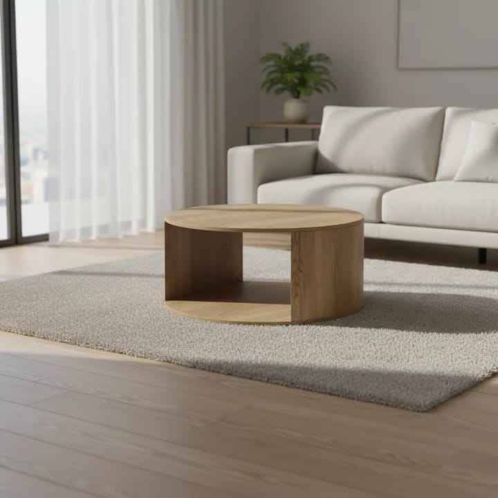 Mesa Auxiliar Redonda Moderna de Roble Natural, Mesa Lateral Circular de Madera de 2 Niveles con Estante de Almacenamiento, Mesa de Noche para Dormitorio o Sala de Estar