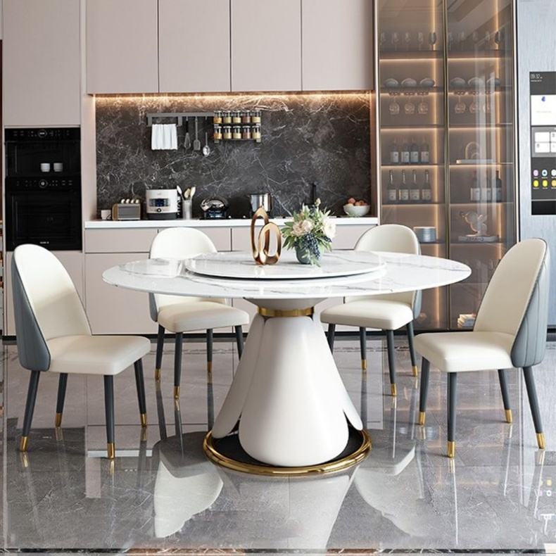 Mesa de comedor de mármol real redonda moderna naturaleza italiana de lujo con Centro giratorio Lazy Susan