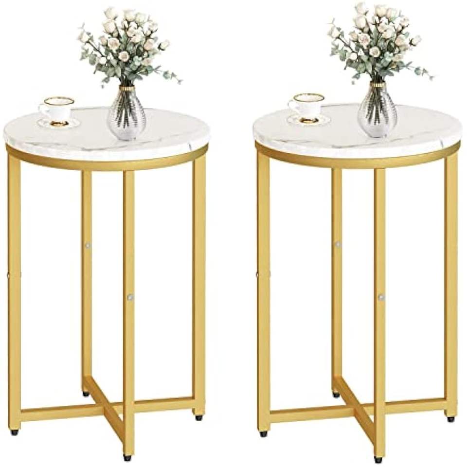Juego de mesas decorativas, mesa auxiliar de Metal con acabado dorado, suministros de muebles de estilo moderno portátiles fáciles, mesa de Metal, tapa de mármol blanco