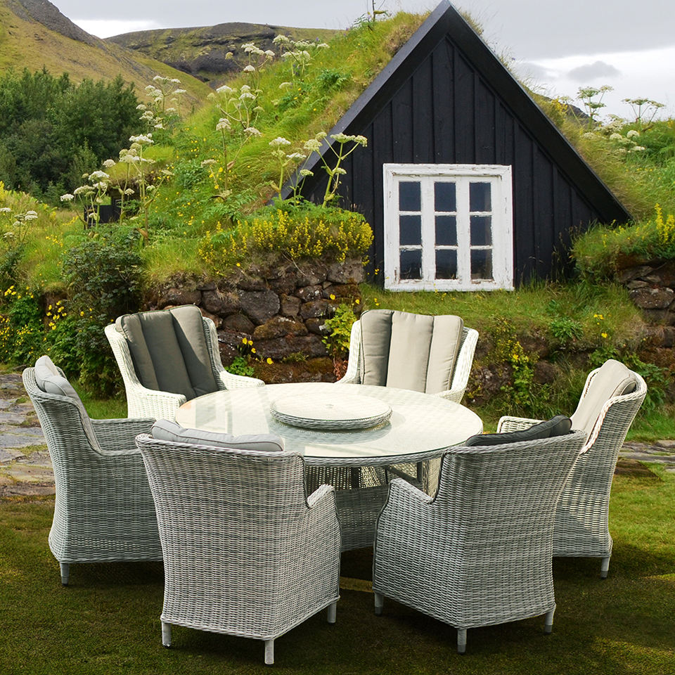 Mesa Redonda Moderna con Bandeja Giratoria, Muebles de Jardín de Ratán, Juego de Comedor para Exteriores