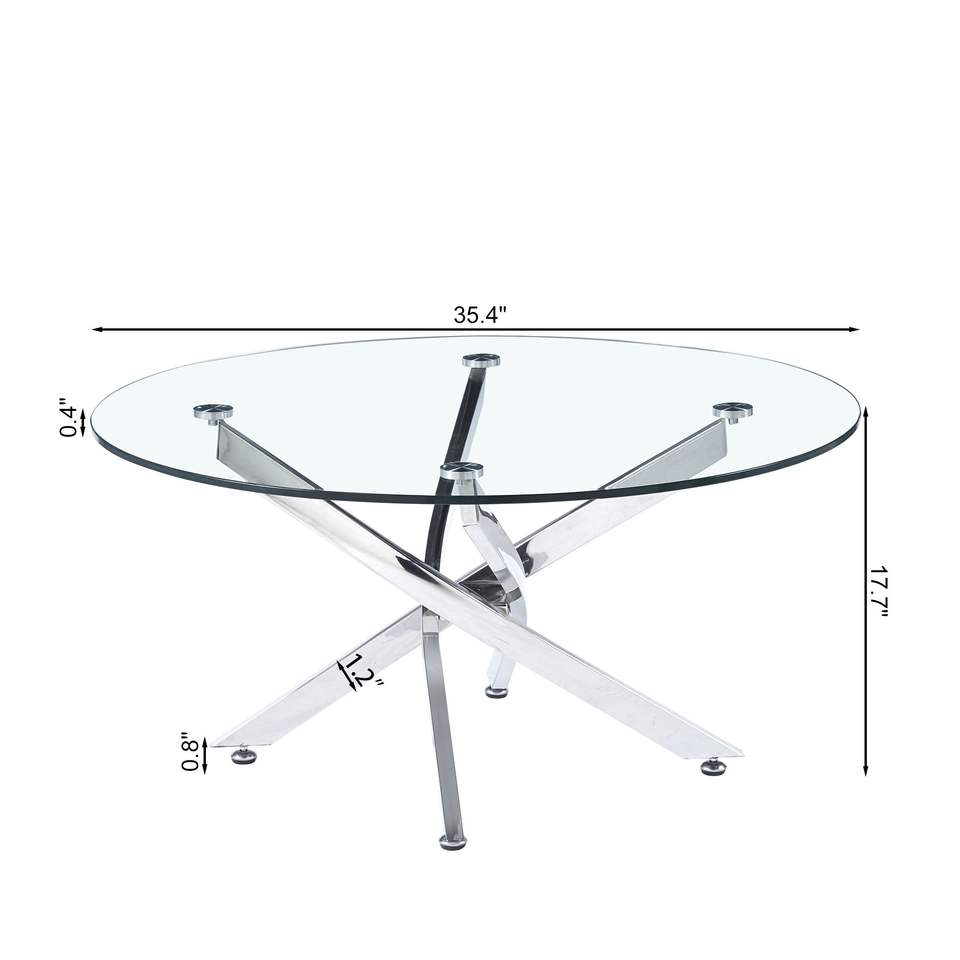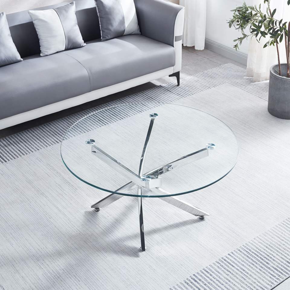 Mesa de Centro Moderna Redonda de Vidrio Templado con Elegantes Patas Cromadas