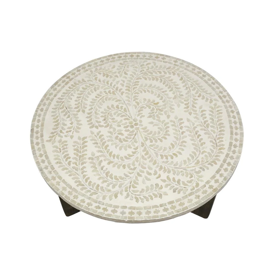 Mesa de centro blanca redonda moderna con incrustaciones de fregona, juego de mesa auxiliar al por mayor para sala de estar, muebles para el hogar de Vietnam