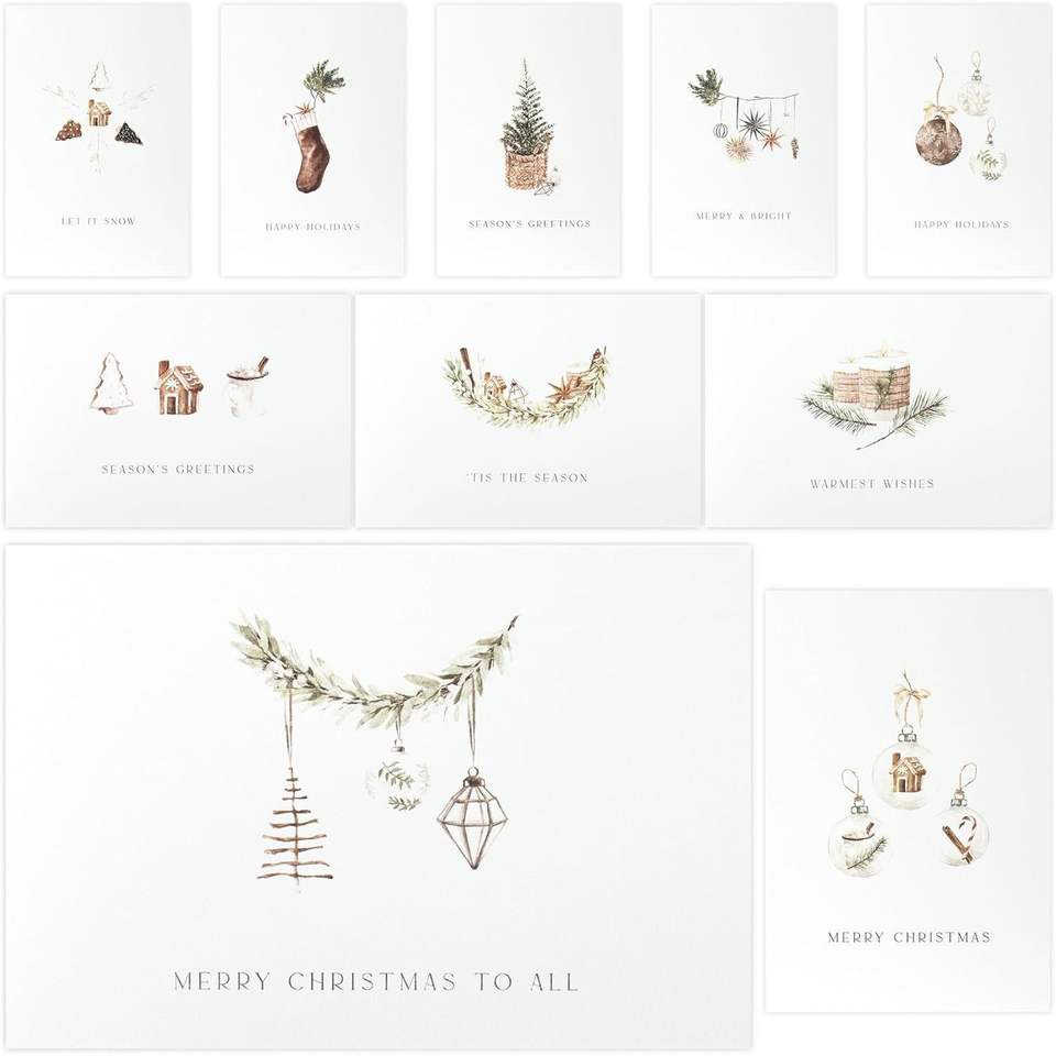 Juego de 20 Tarjetas de Felicitación Navideñas Rústicas Modernas, Bellamente Diseñadas para tus Deseos de Temporada Navideña