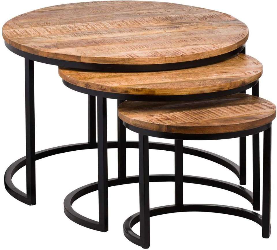 Nombre del producto:Conjunto de 3 mesas laterales industriales rústicas de madera natural de metal