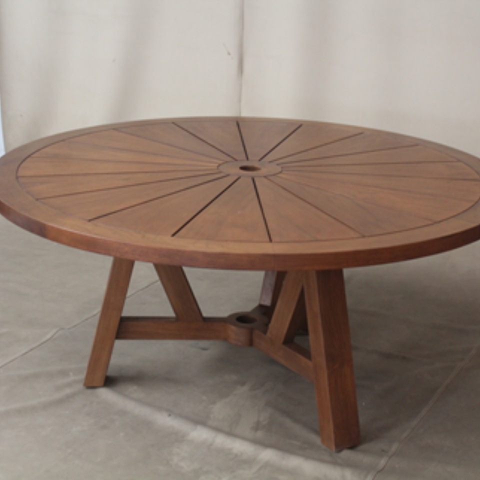 Mesa de Comedor Redonda Rústica Moderna de Madera de Teca con Acabado Natural para Jardín o Terraza, Espacios Exteriores