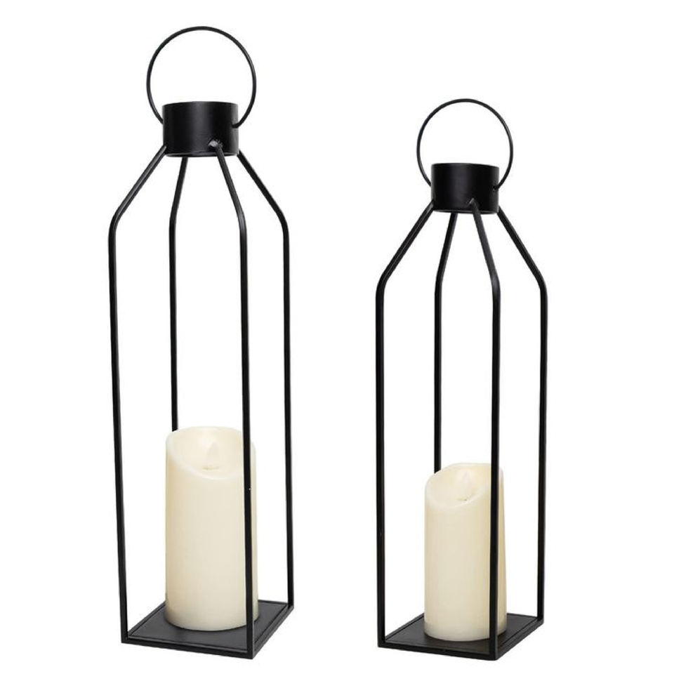 Faroles Metálicos Rústicos Modernos en Acabado Negro Mate, Farol de Metal para Velas con los Mejores Precios para Decoración del Hogar y Jardín