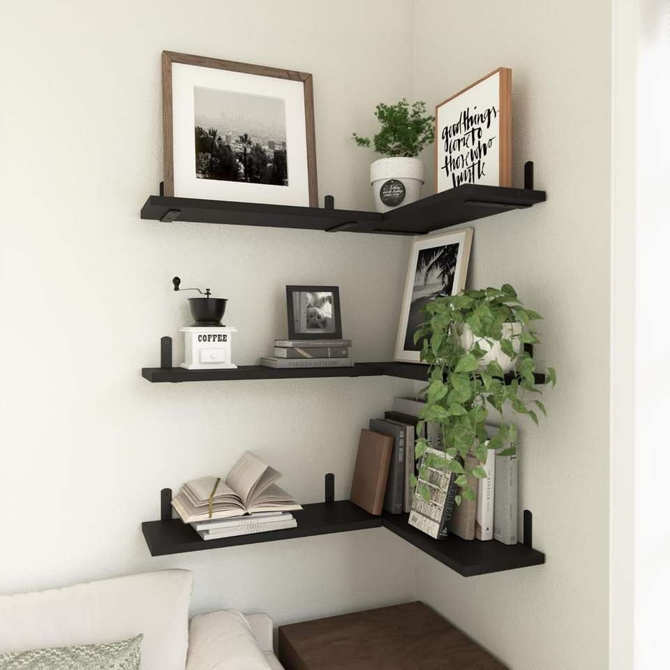 Estantes Esquineros Flotantes de Madera Rústica Moderna, Estantes de Pared para Herramientas de Limpieza, para Baño, Cocina, Dormitorio, Decoración del Hogar