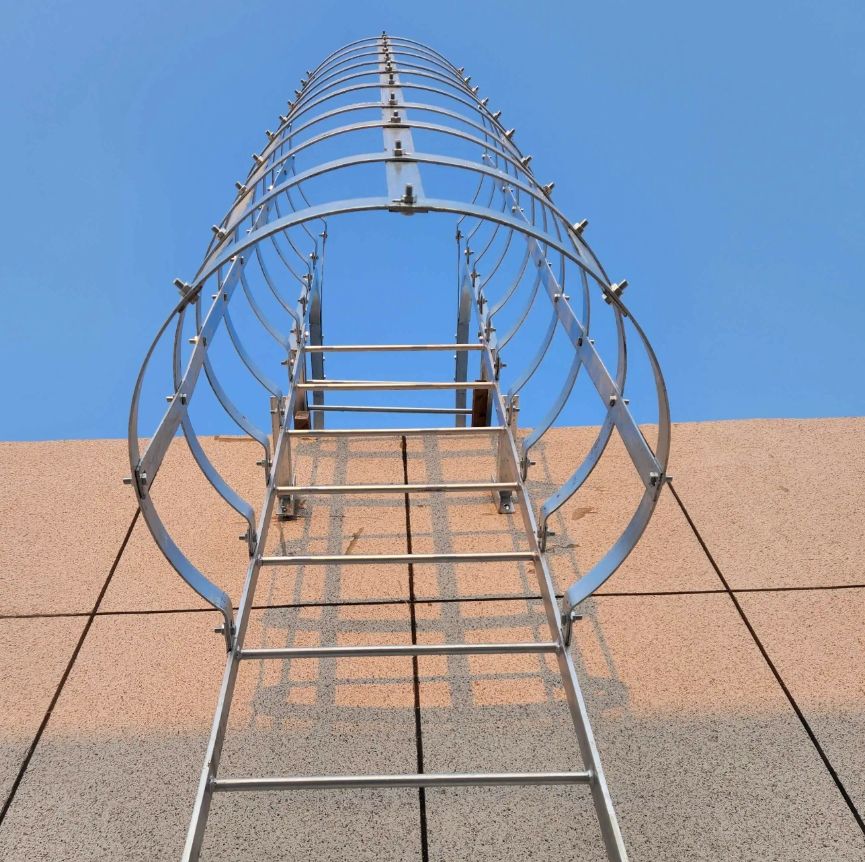 Escalera de Acceso a Techo Recta Simple, Moderna, de Protección y Seguridad, Montada en la Pared, Aislada, para Talleres Exteriores, Certificada EN131, de Acero Inoxidable