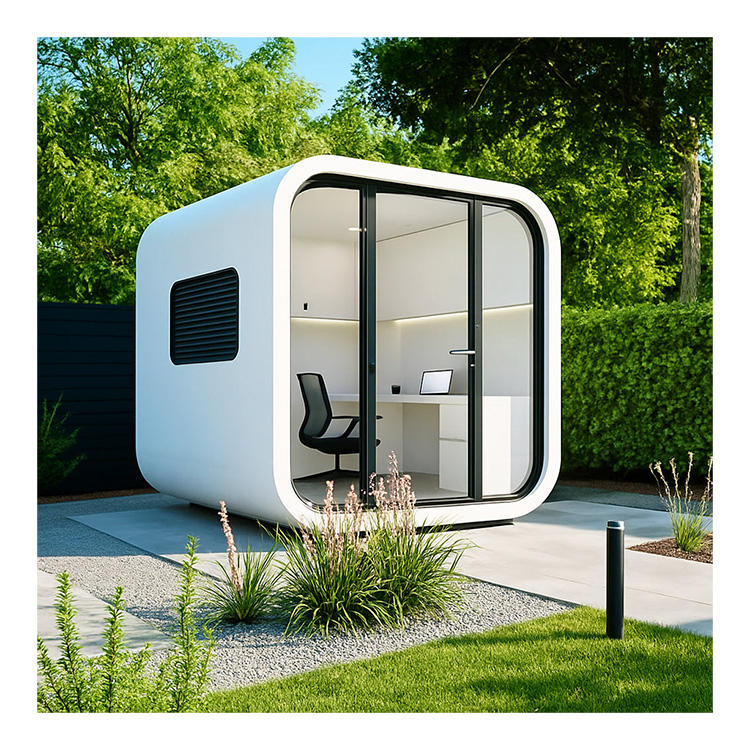Mini Sala de Reuniones Prefabricada de Estilo Escandinavo Moderno, Impermeable, con Tecnología de Vidrio Inteligente y Ventanas de Piso a Techo