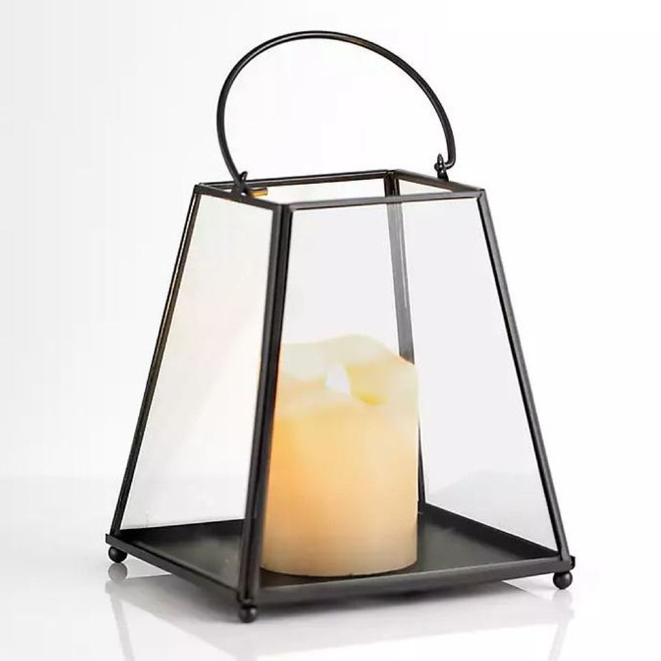 Farol Moderno de Metal y Vidrio Rústico con Acabado Negro Mate, Faroles de Metal para Velas, Decoración del Hogar para Exteriores, Hechos a Mano