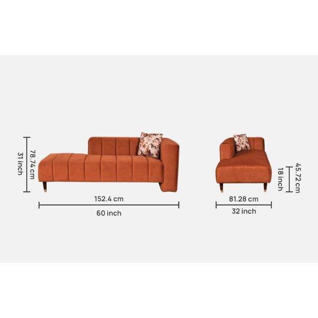 Tumbona moderna Serenity RHS en terciopelo óxido salón de tela cómoda para sala de estar