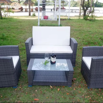 Juego de sofá de jardín de ratán de 4 piezas moderno, muebles de exterior para Villa, sala de estar, comedor, Hotel, escuela, dormitorio, parque, oficina, apartamento