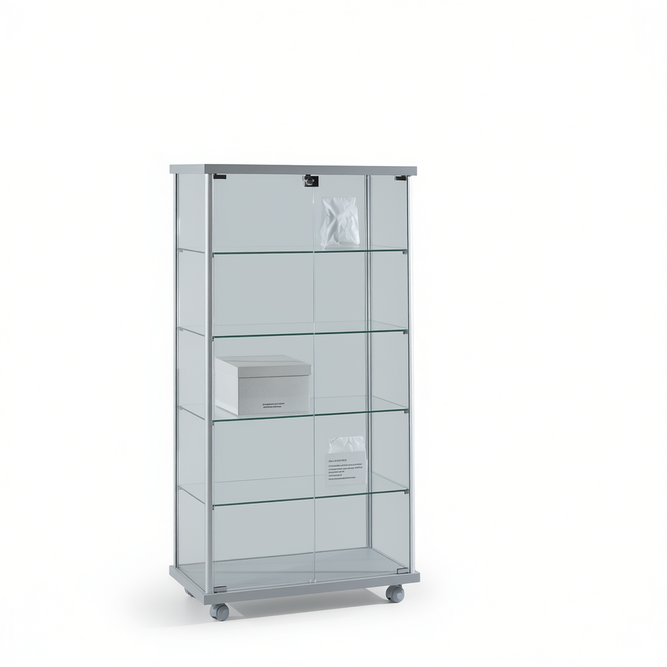 Vitrina Moderna con Marco de Aluminio de 75 cm de Ancho y 145 cm de Alto, Puertas de Vidrio Gris Claro, Estantes Ajustables