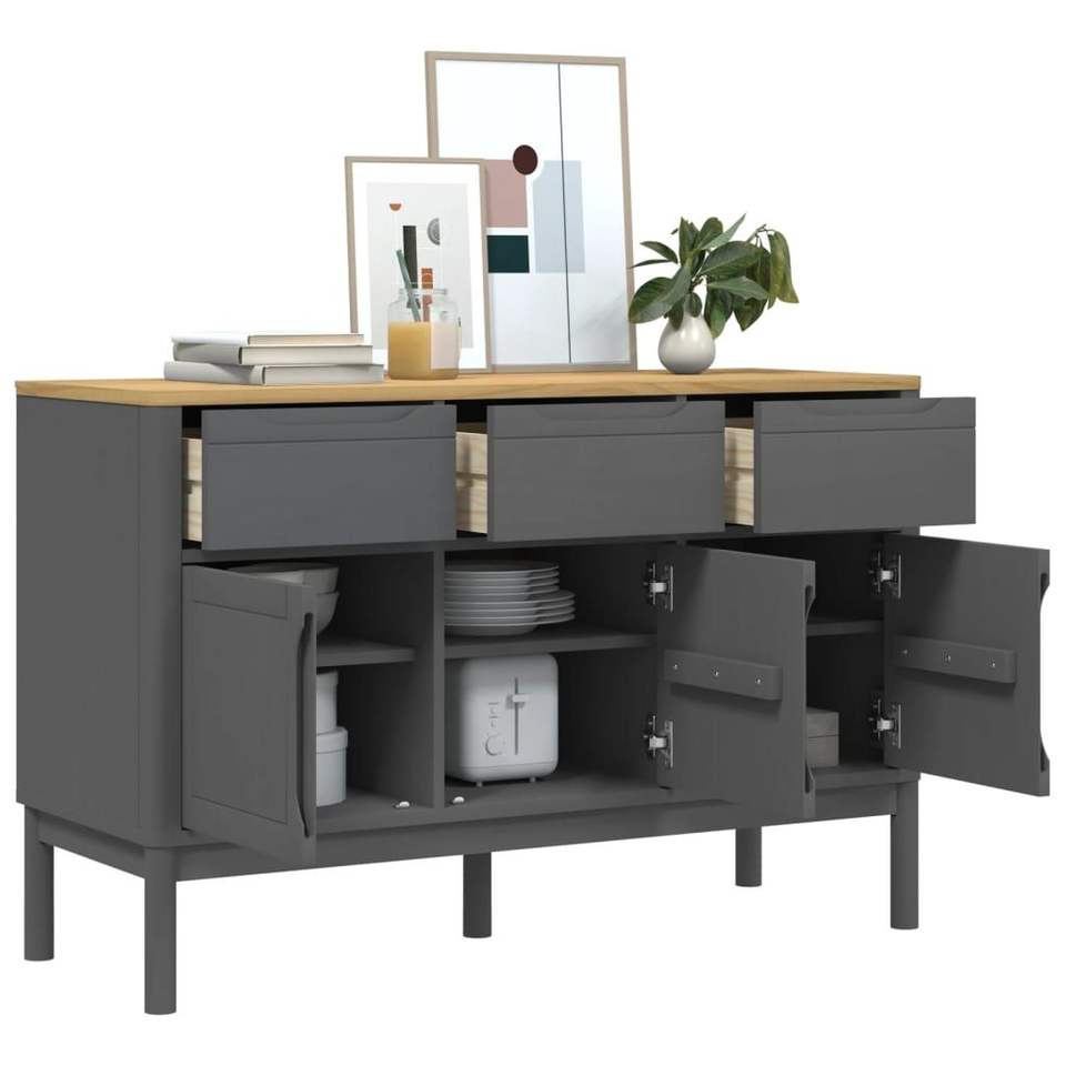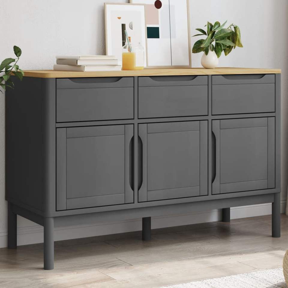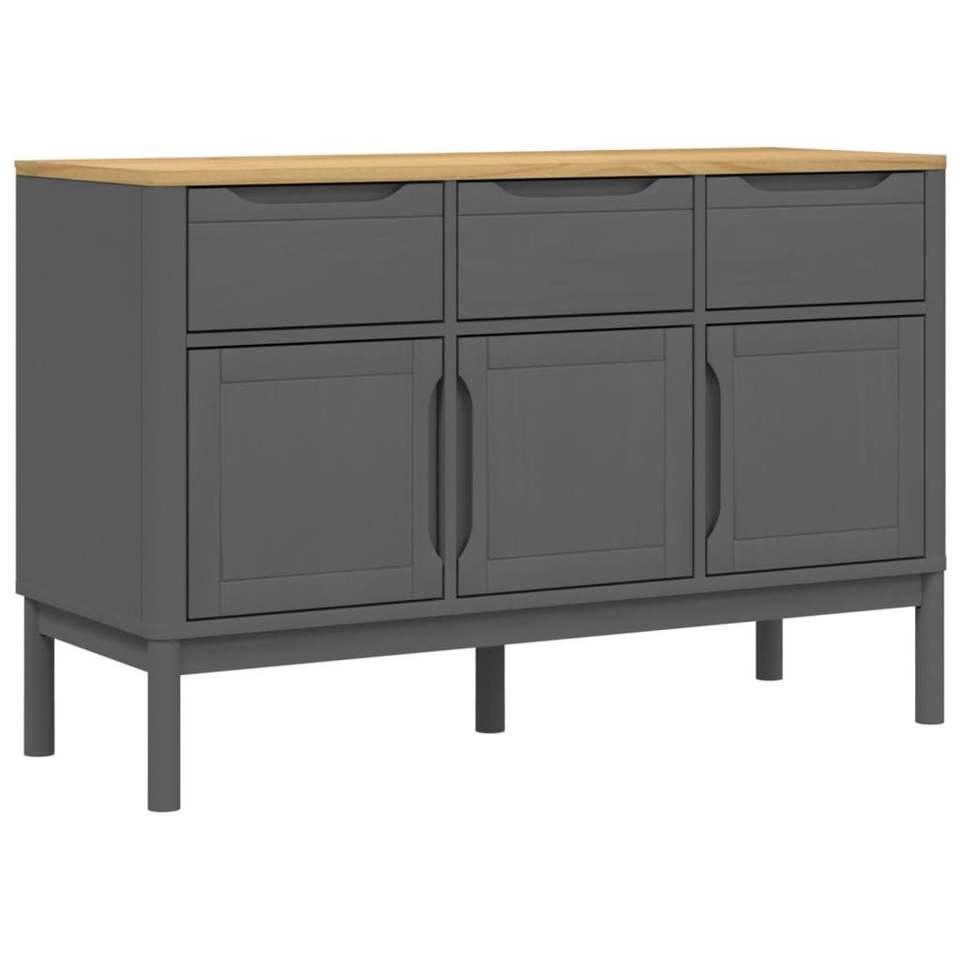 Aparador moderno en madera de pino macizo gris con tirador de madera para muebles de comedor