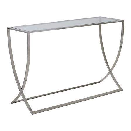 Mesa Consola Moderna Plateada con Marco de Trébol de Diseño y Cubierta de Vidrio para un Acabado Elegante en la Decoración del Hogar