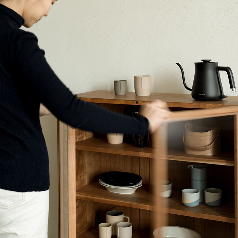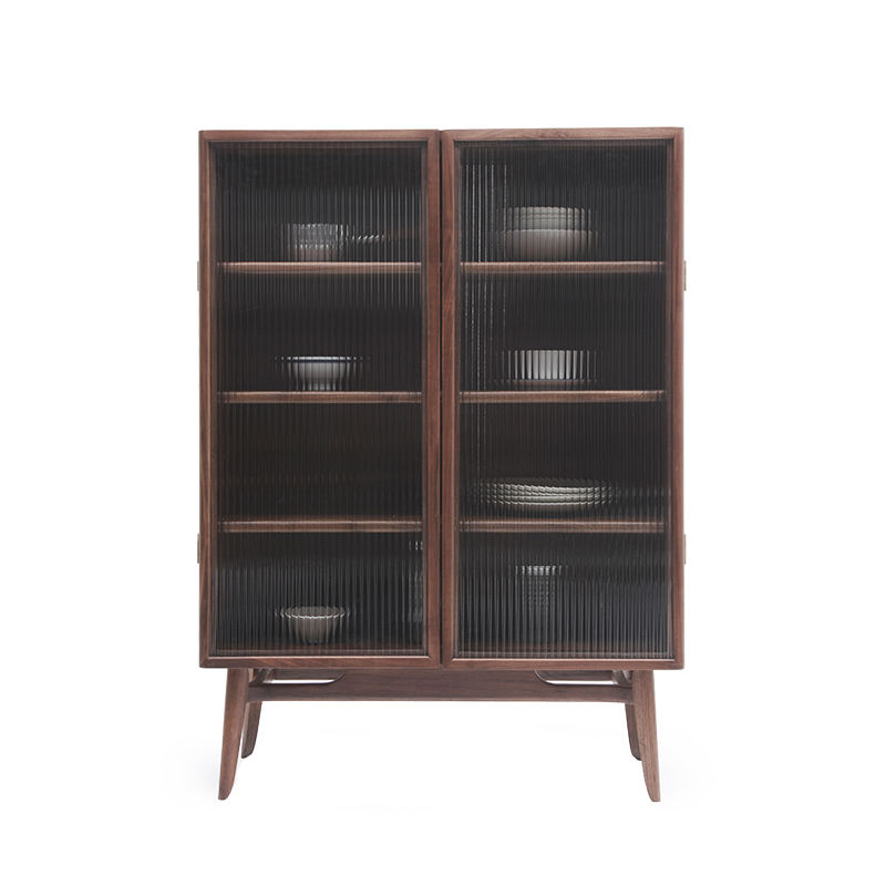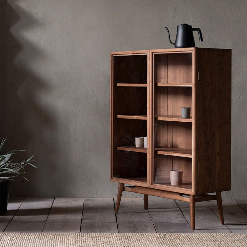 Aparador de Madera Maciza de Nogal Negro y Cerezo con Diseño Moderno y Sencillo, Vitrina con Puertas de Vidrio para Almacenamiento en la Sala de Estar