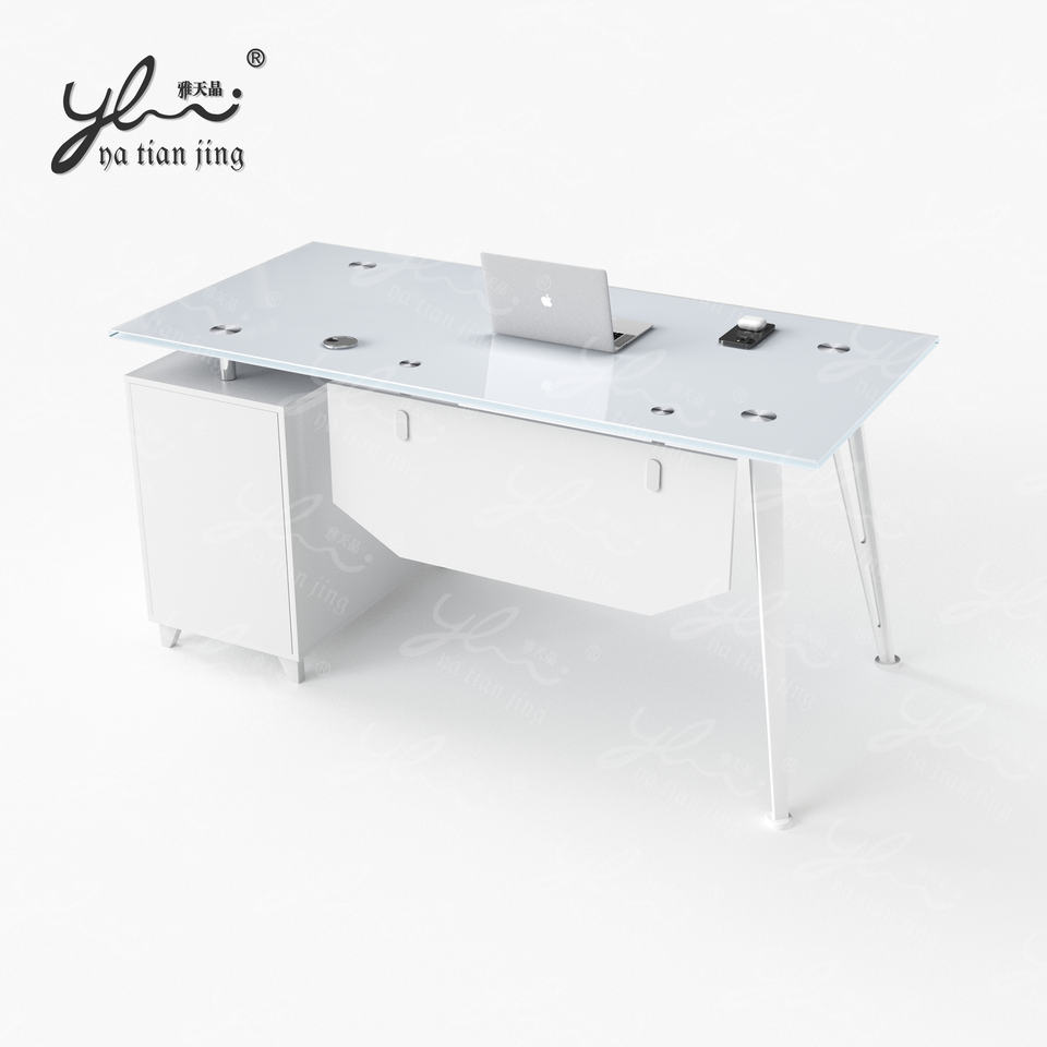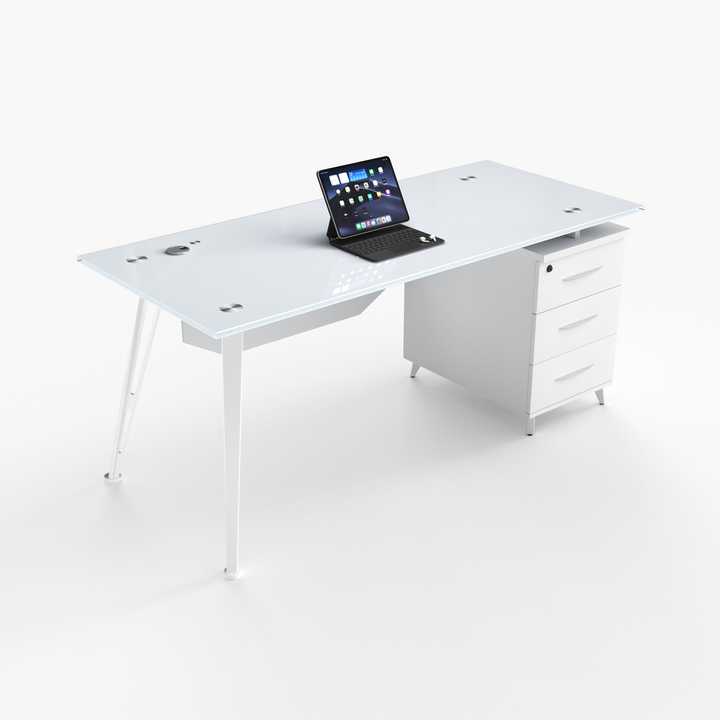 Escritorio de Vidrio Moderno y Simple para Oficina en Casa o Dormitorio, Mesa de Computadora de Hierro con Cajón, Muebles para Espacios Pequeños