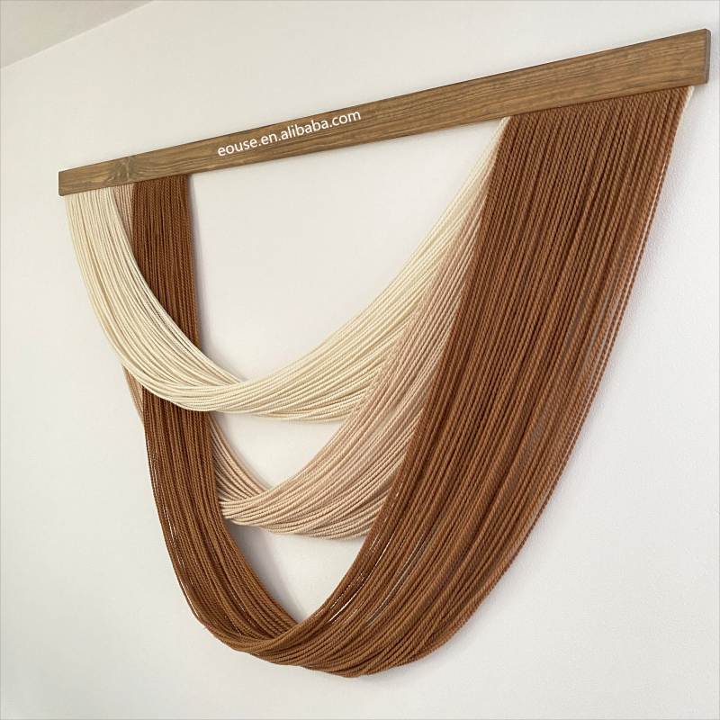 Moderno Simple gris macramé colgante de pared con muebles de barra de madera decoración de la habitación del hogar tapiz tejido a mano dormitorio sala de estar