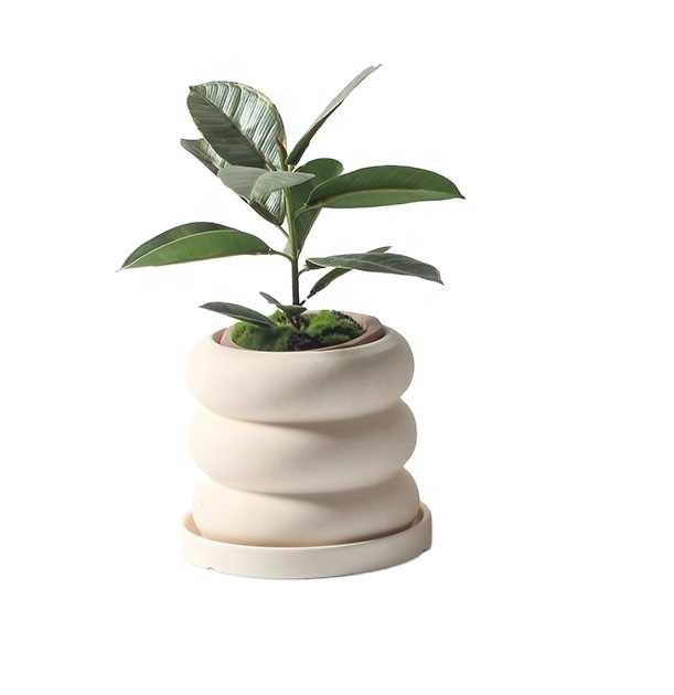 Maceta Moderna y Sencilla de Cerámica de Porcelana Estilo INS con Orificio de Drenaje y Plato, Diseño de Donut Blanco Sin Esmaltar, Minimalista para Suculentas de Interior
