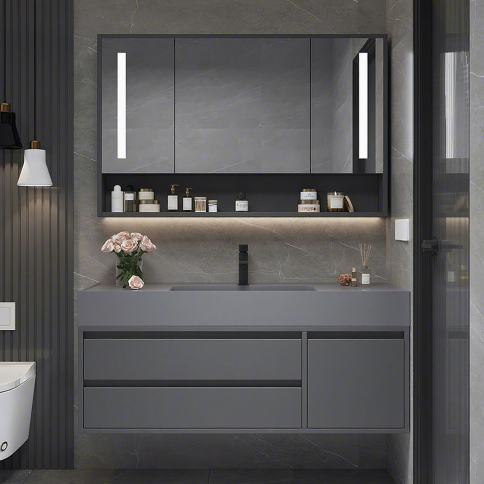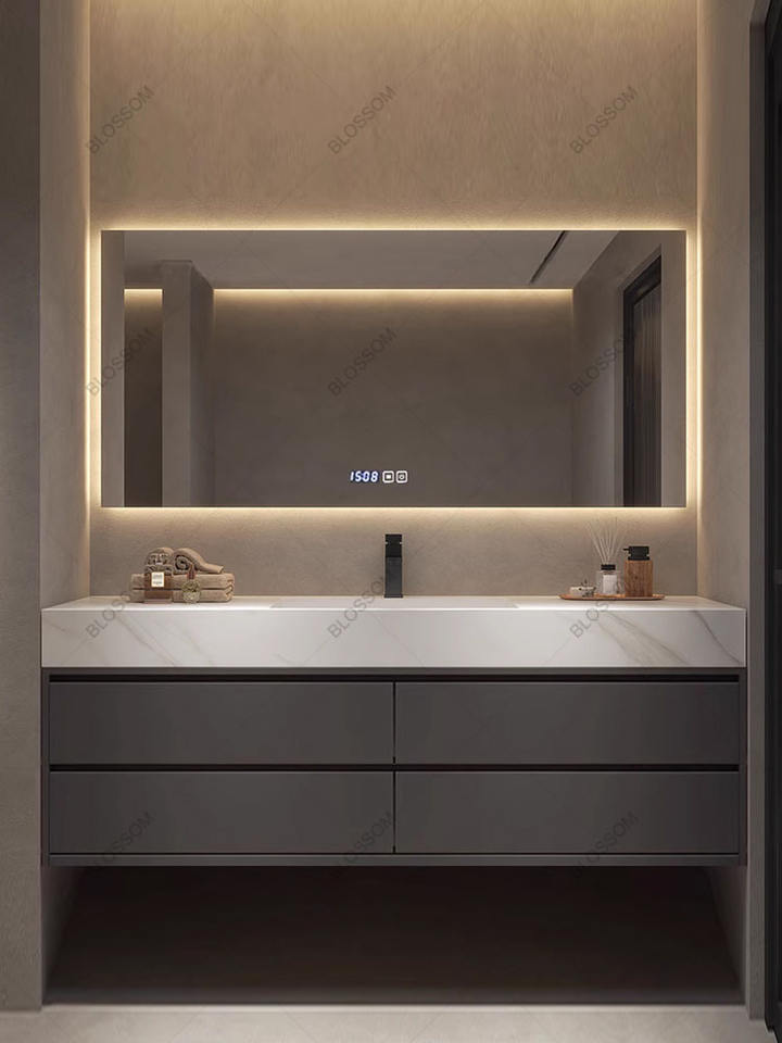 Mueble de Baño Moderno, Simple, de Lujo Ligero, con Lavabo Integrado sin Costuras, Espejo Inteligente y Lavamanos