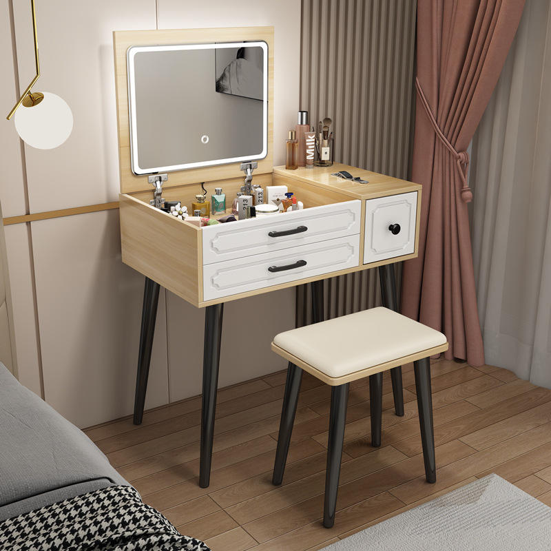 Tocador de maquillaje sencillo y moderno con espejo oculto, tocador nórdico, pequeña mesa cosmética para dormitorio, superventas